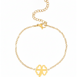 Bracelets acier inoxydable doré : trèfle, cœur, fleur, soleil. Résiste à l'eau, ne ternit pas. Bijoux symboliques durables.