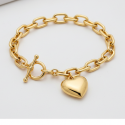 Affirmez votre style avec ce bracelet tendance à gros maillons en acier inoxydable doré, rehaussé d'un pendentif cœur doré.