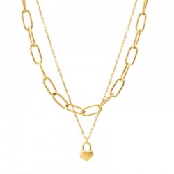 Optez pour l'ultime accessoire tendance avec ce collier double cadenas cœur. Ce bijou vous offre un effet de superposition parfait sans effort.
