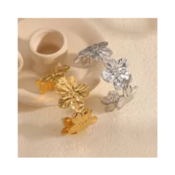 Affirmez votre style avec ce bracelet grandes fleurs en acier inoxydable. Ce bijou tendance se distingue par son design xxl audacieux, intégrant des fleurs en relief avec une texture travaillée.